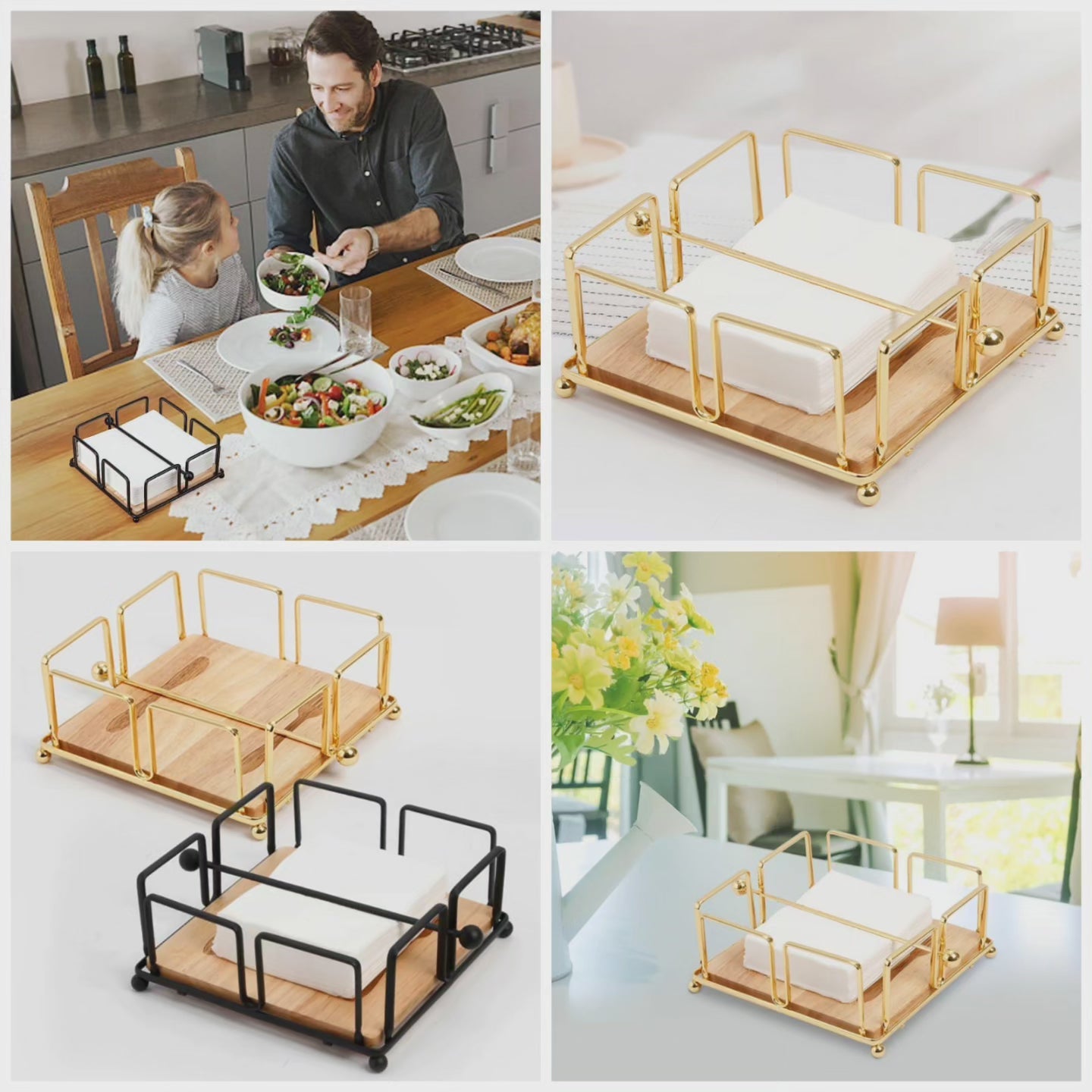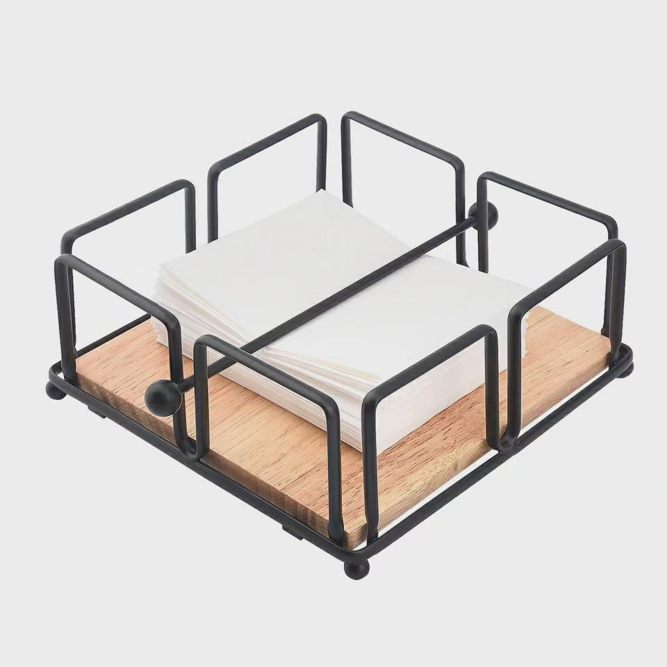 Distributeur de serviette en métal chic, avec support en bambou -2499/-