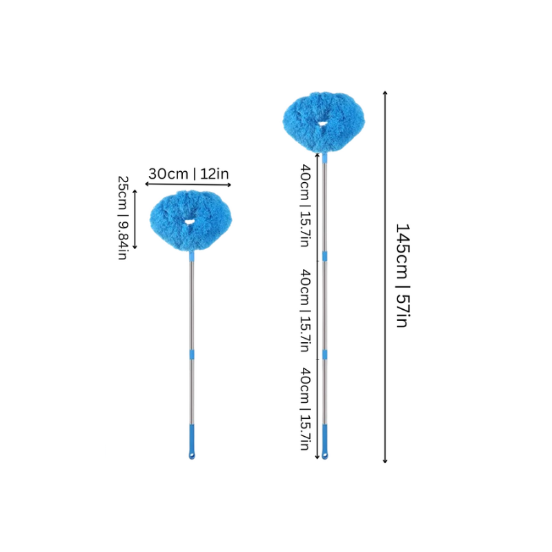 Le DustWing ne se limite pas à être un simple épousseteur ; il deviendra un indispensable de votre routine de nettoyage ! Doté d'un mât télescopique ajustable de 145 cm à 58 cm, vous pourrez atteindre chaque recoin de votre maison sans avoir besoin d'escabeaux ou de chaises. Glissant avec aisance, vous accomplissez vos tâches tout en restant sur le sol, laissant votre intérieur éclatant.
