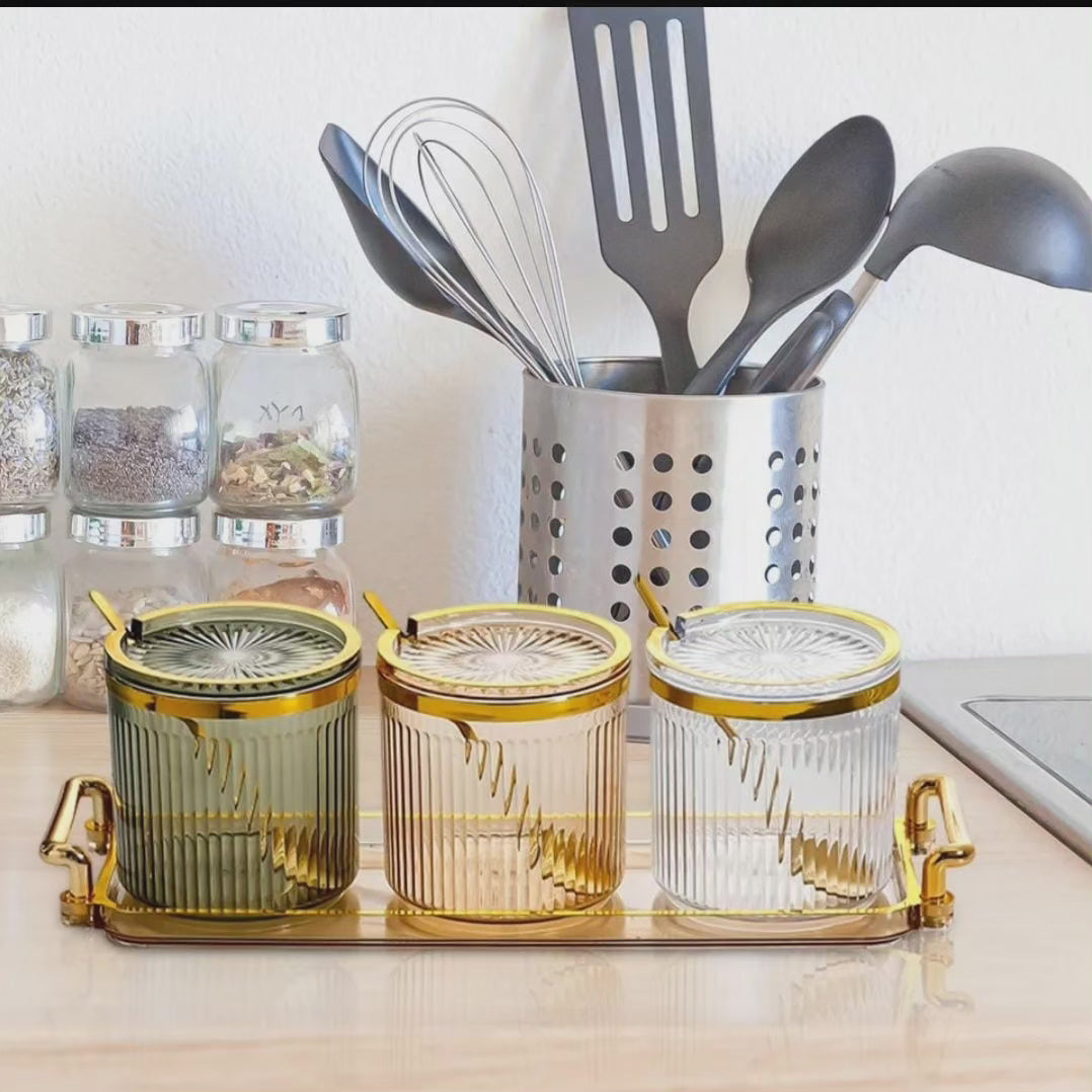 Parfait pour les assaisonnements, le sucre, etc*. *✅Inclut des autocollants à épices adorables, un plateau, 3 récipients et 3 cuillères à mesurer