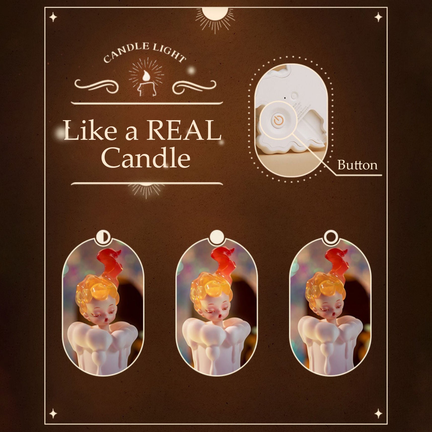 âšDesign Exclusif de la FĂ©e Acheteur : Cette lampe reprĂ©sente une fĂ©e mystique avec des cheveux flamboyants, un visage paisible et un corps en forme de bougie, ajoutant une note joyeuse Ă toute piĂšce.