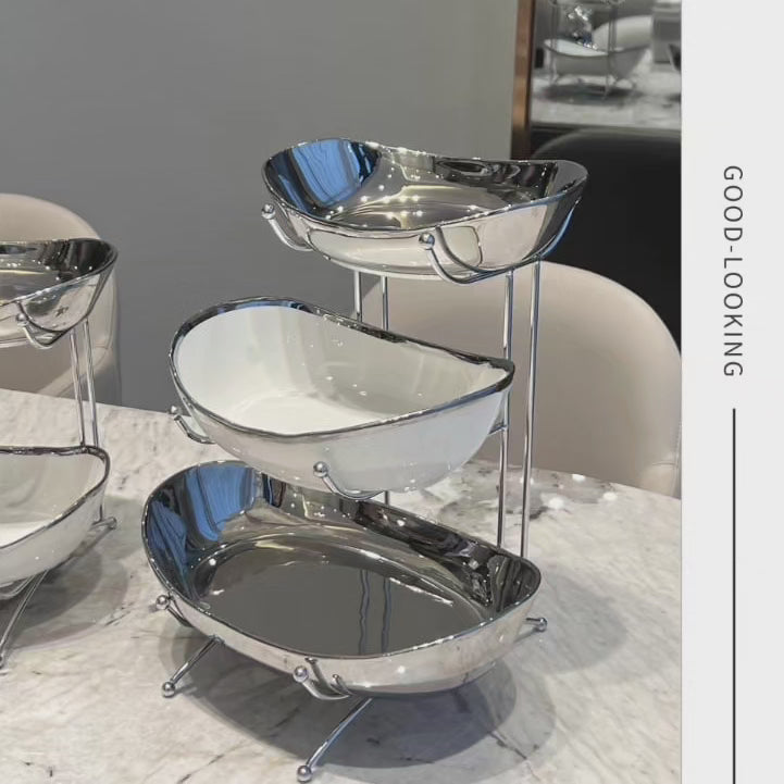 Plateau à fruits / encas en céramique à 3 étages style Nordic*-4500/-