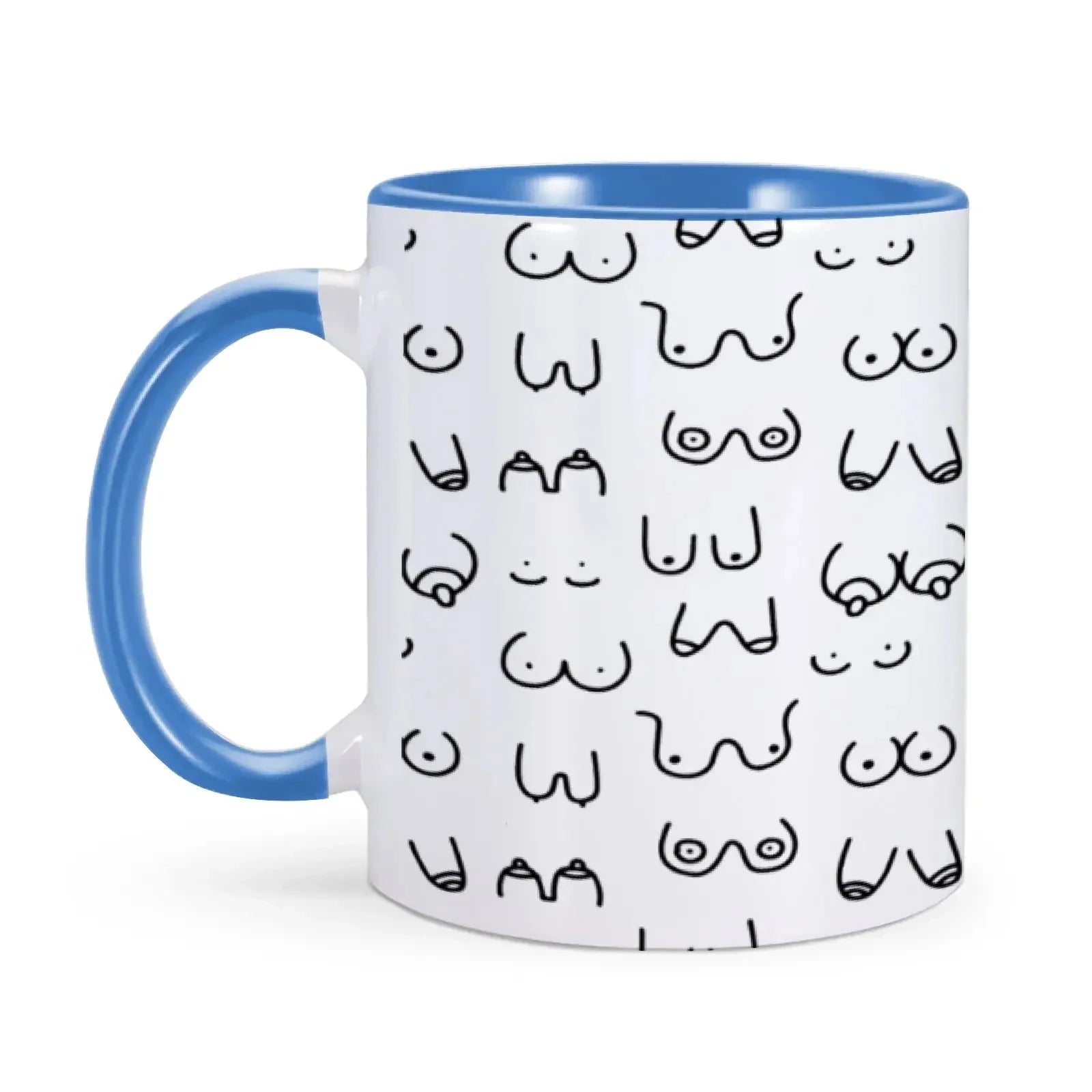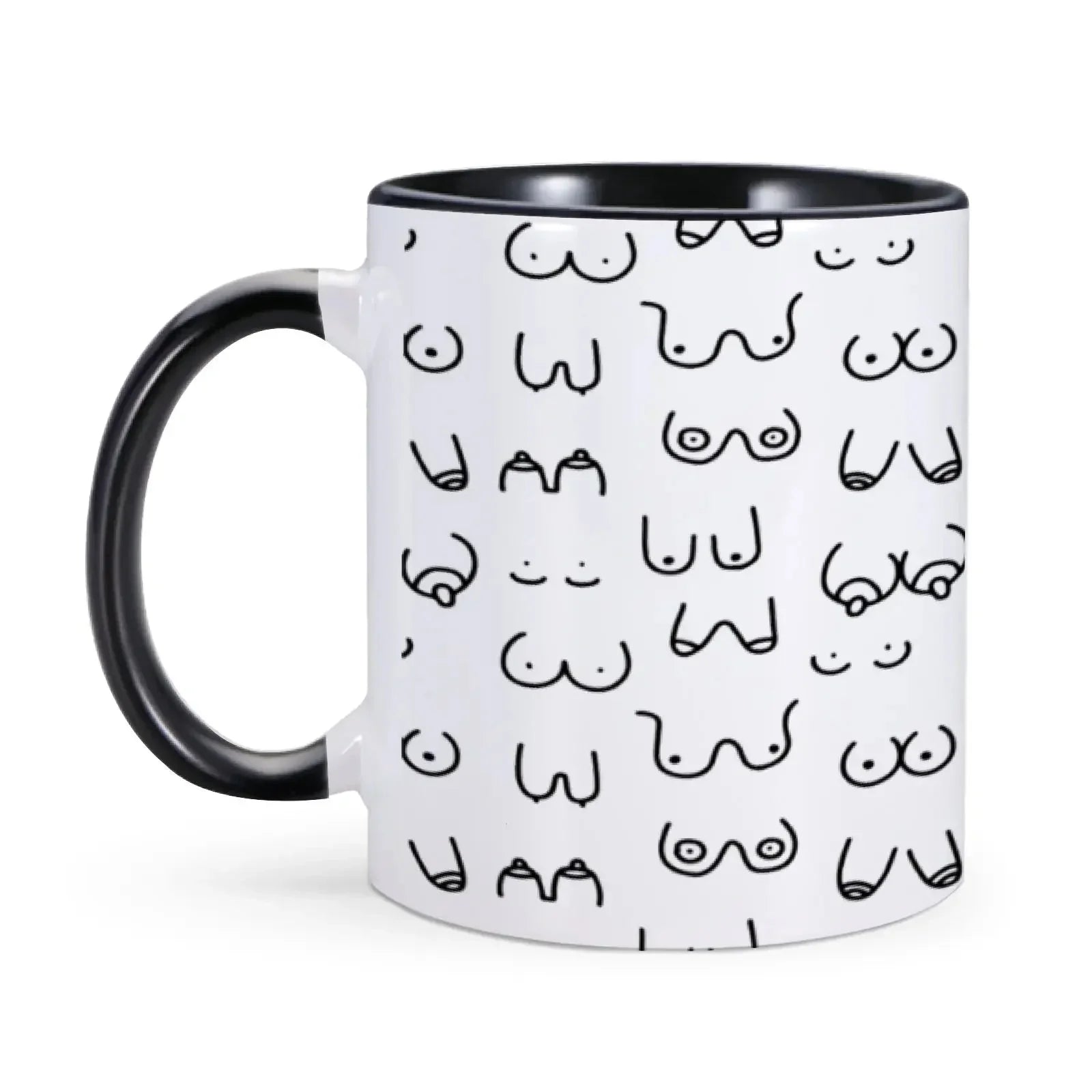 Avec cette tasse de café ludique arborant un motif humoristique de seins, vous êtes sûr de faire rire tous ceux qui la voient ! Cette tasse en céramique est idéale pour votre apport quotidien en caféine et ajoute une note originale à votre routine. Un présent parfait et singulier – célébrons les contenants à boire amusants et divertissants !