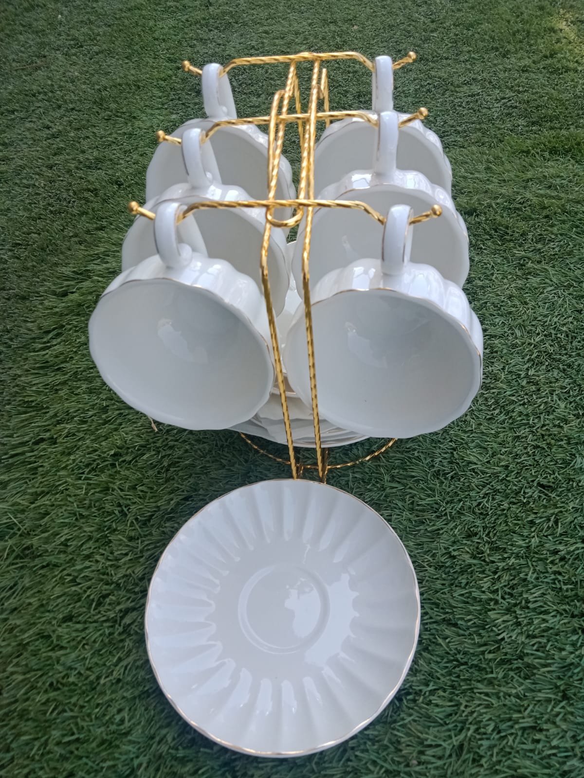 Ensemble de tasses et soucoupes avec un porte-tasse