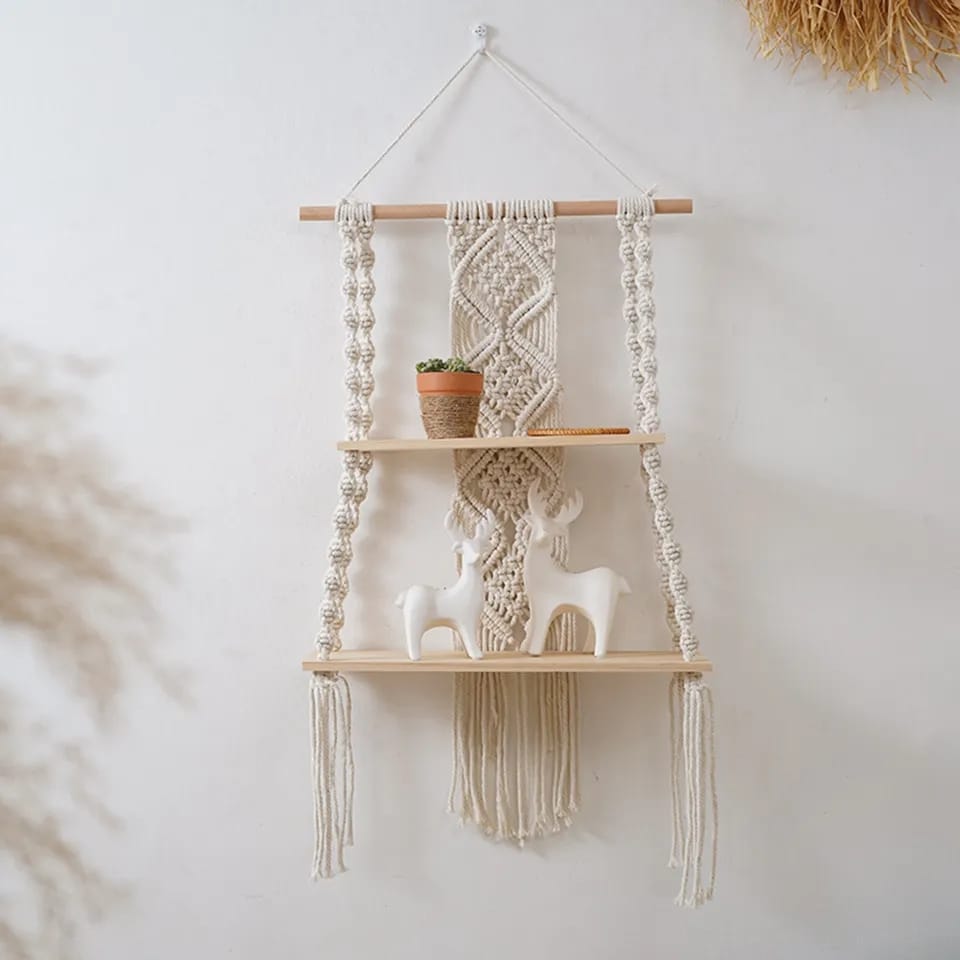 Étagères flottantes murales bohémiens tissées à 2 niveaux