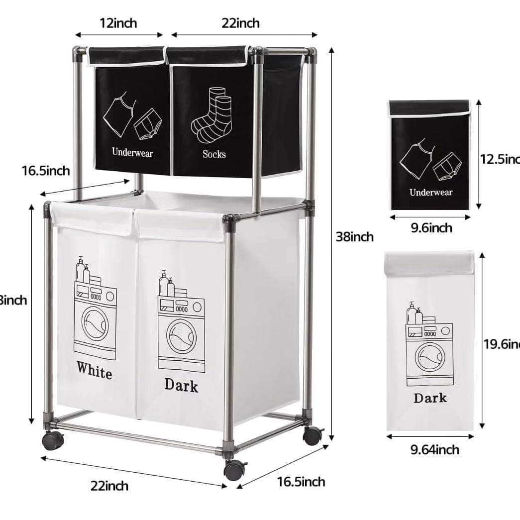 *Organisateur de Linge à Compartiments de Tri-3850/- Panier à Linge Repliable avec 4 Sections de Tri, 2 Grandes Poches Latérales et 2 Petites Poches Latérales pour Ranger la Buanderie ou la Chambre,