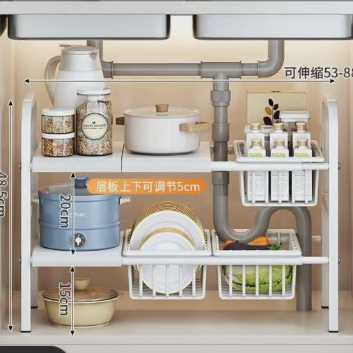 Sous l'évier Étagère réglable à 2 niveaux
