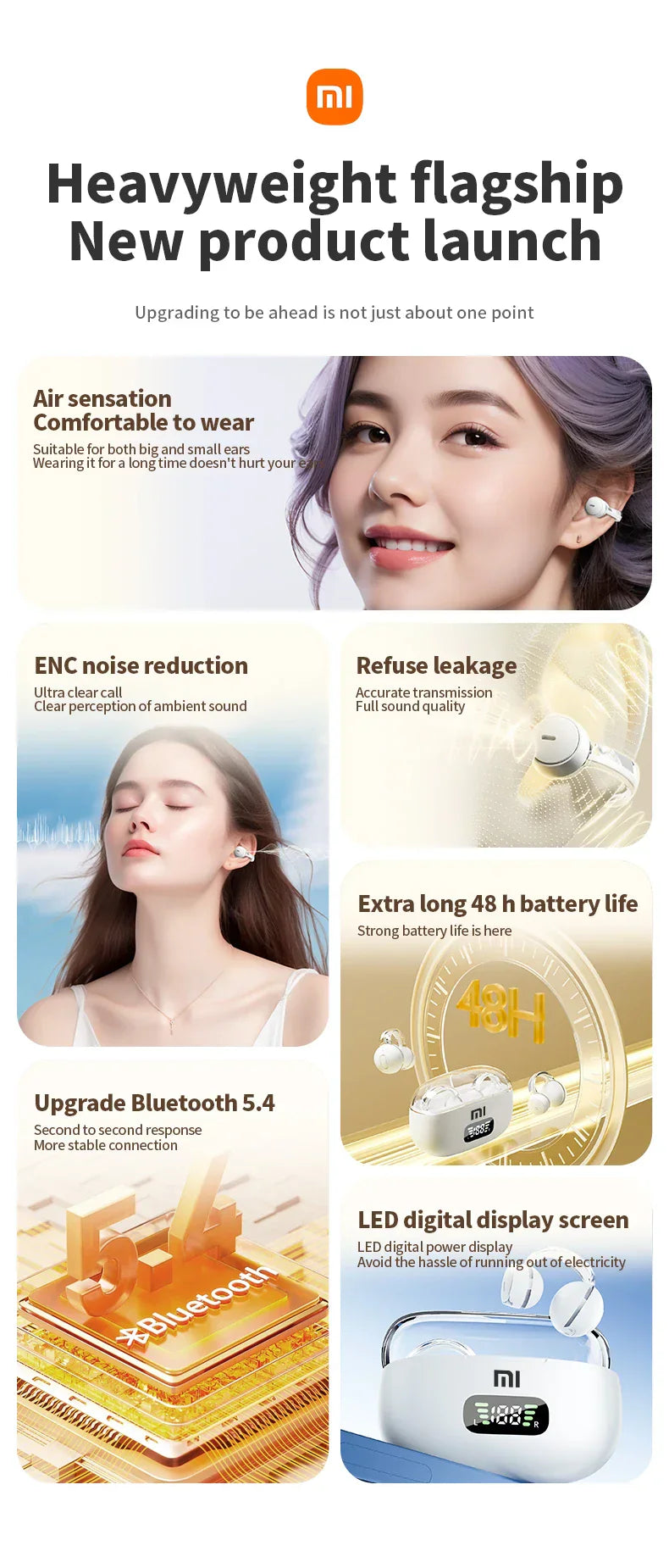 Écouteurs sans fil Bluetooth Xiaomi Mijia S39 avec clip d'oreille - avec affichage LED - réduction de bruit ANC TWS audio stéréo HiFi écouteurs écouteurs